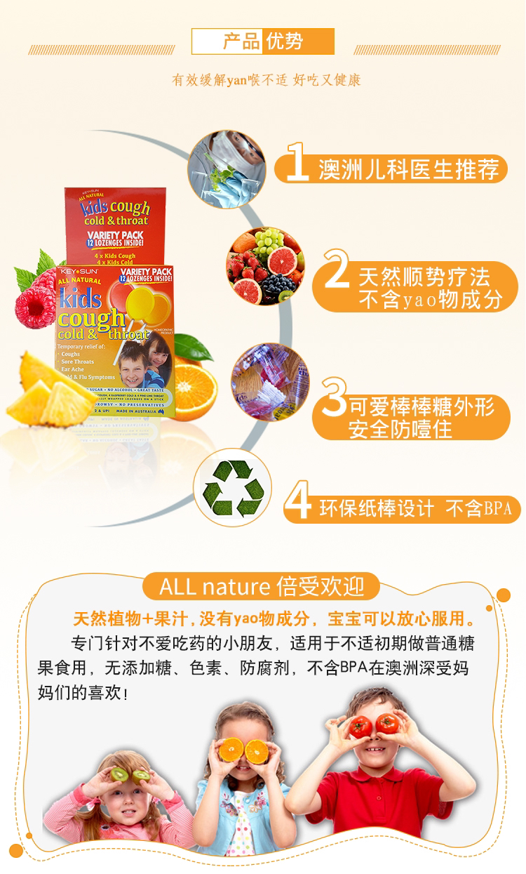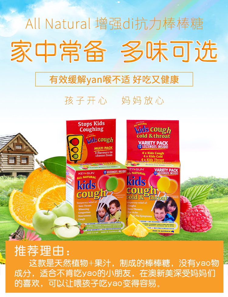 天然药物加入果汁制成的棒棒糖,应该很好吃的,主要是孩子不抗拒吃药就很好办!All Natural是澳洲200年的老品牌了,包装一般般,其实澳洲的产品包装都不太讲究……