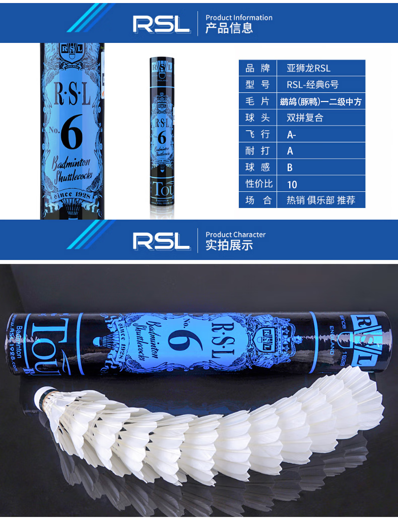 亚狮龙 RSL No.6 Tourney 6号球 羽毛球 畅销款羽毛球
