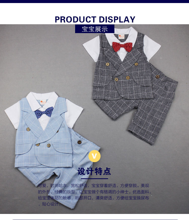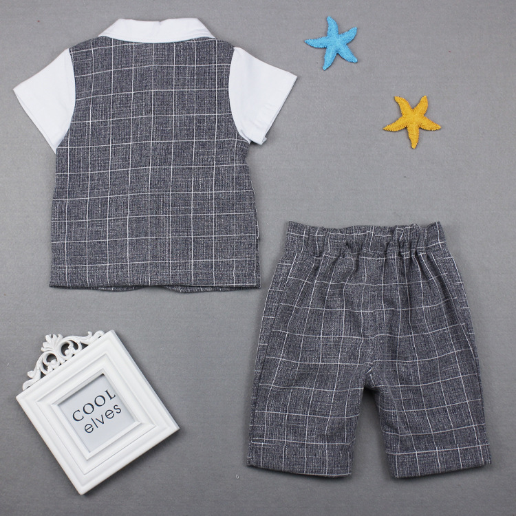 【格子绅士小西装两件套】儿童衣服宝宝夏季短袖男童套装