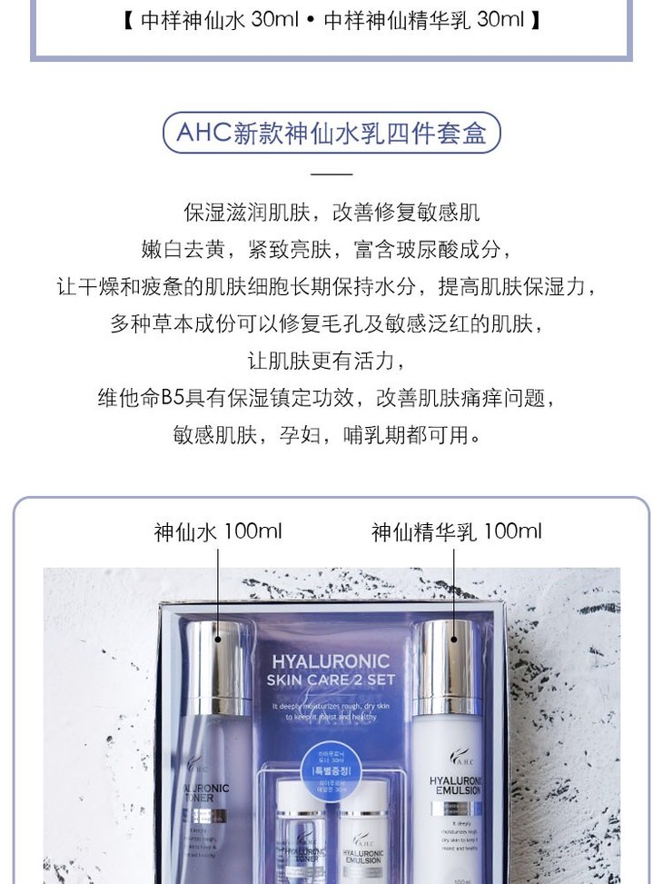 AHC神仙水乳套装 B5玻尿酸敏感肌补水保湿