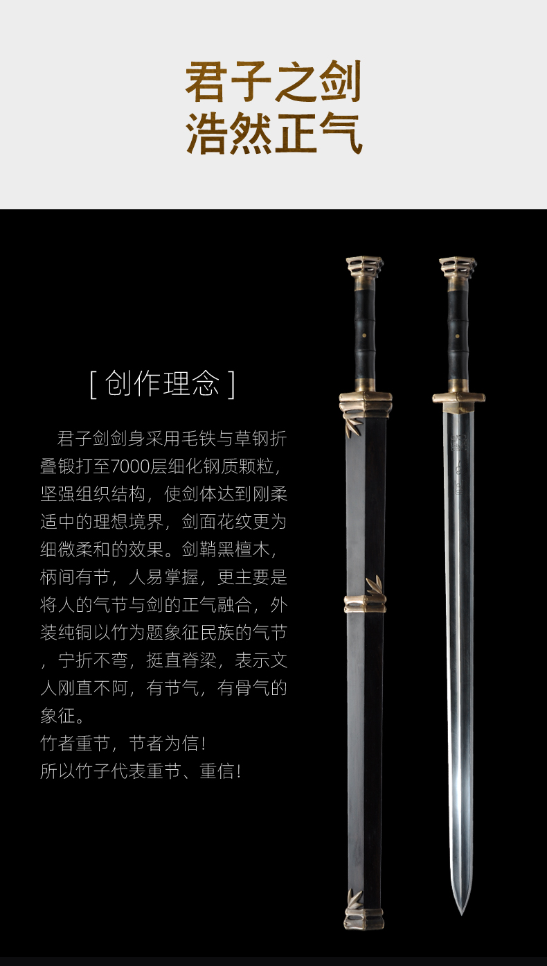 君子剑 中国工艺美术大师沈新培 作品 龙泉沈广隆宝剑 手工传统剑收藏宝剑sgl-1006未开刃