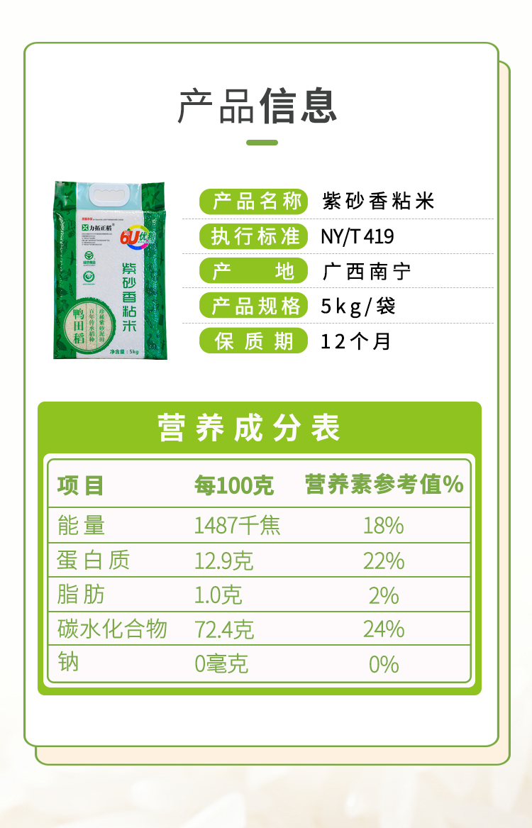 力拓正稻 紫砂香粘米5kg 绿色食品 10斤装