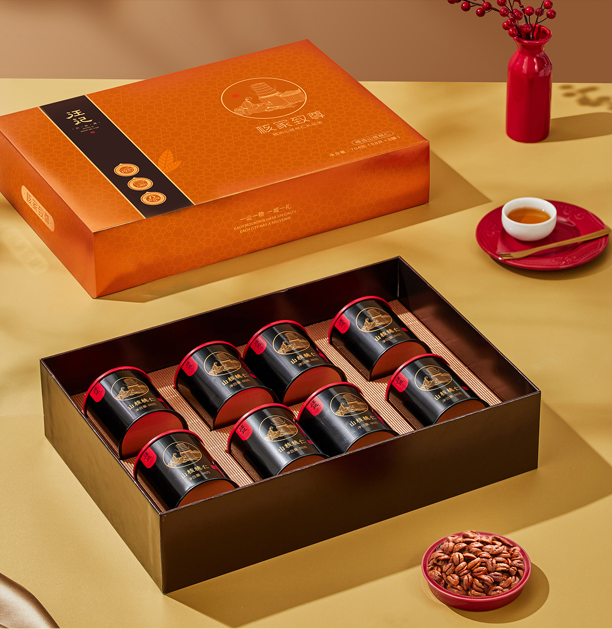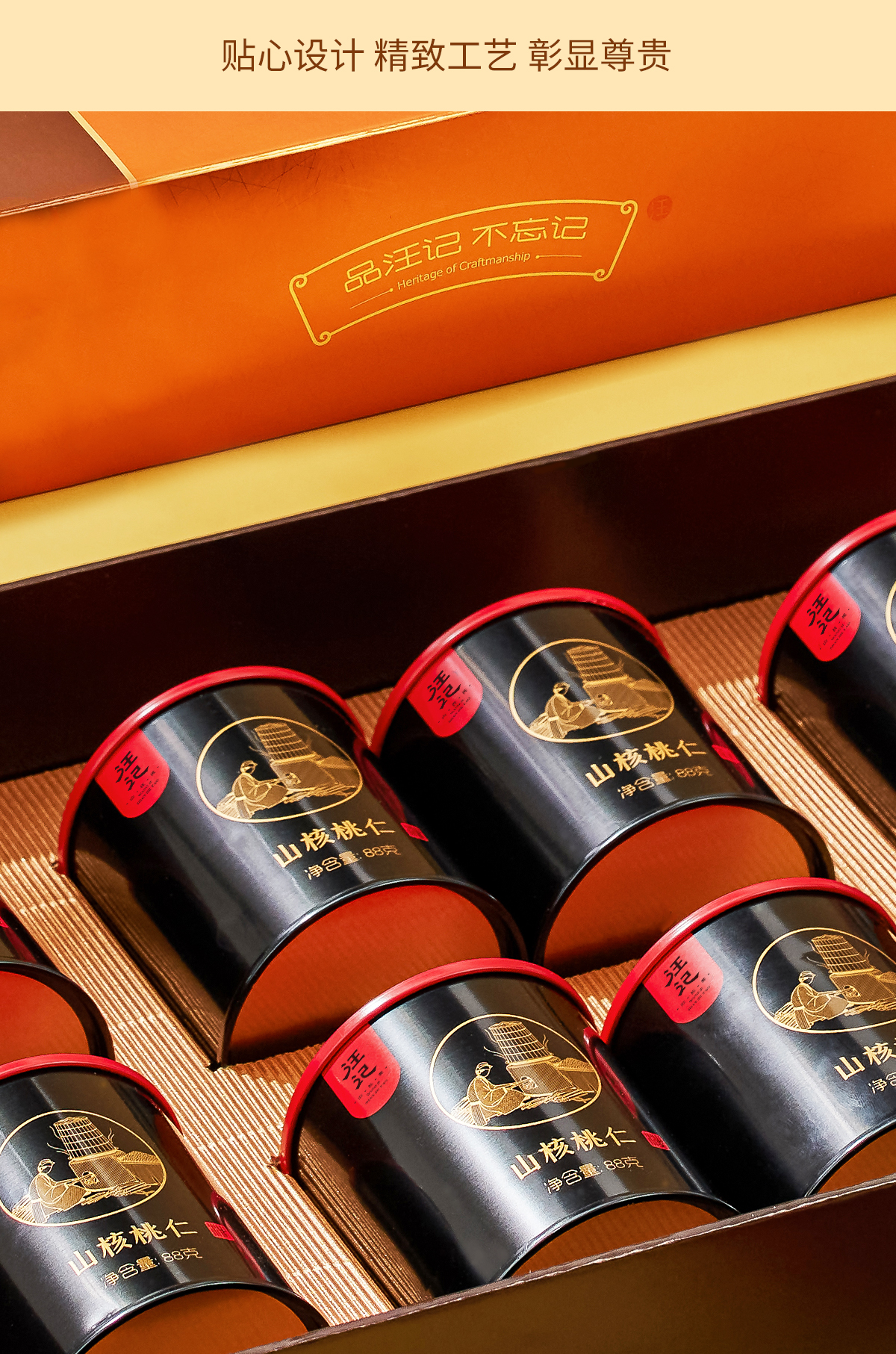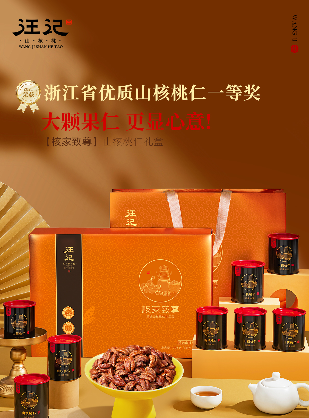 【大颗粒山核桃仁礼盒】汪记山核桃仁核家致尊礼盒杭州特产临安小胡桃仁商务礼盒净重704g