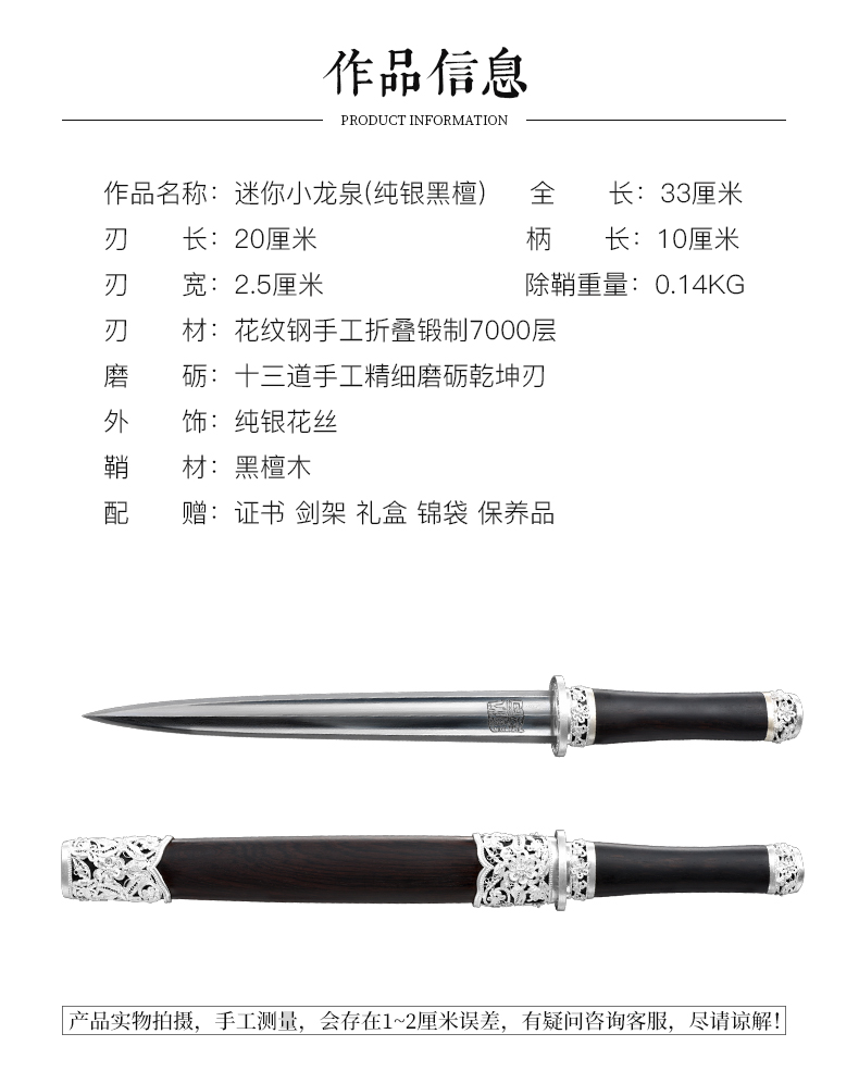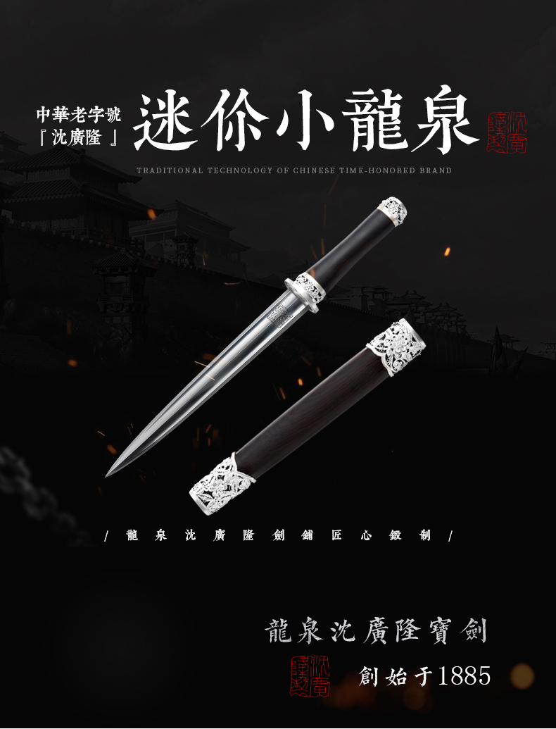 迷你小龙泉 龙泉短剑礼品短剑收藏剑沈广隆剑铺龙泉沈广隆宝剑 sgl-7006 未开刃