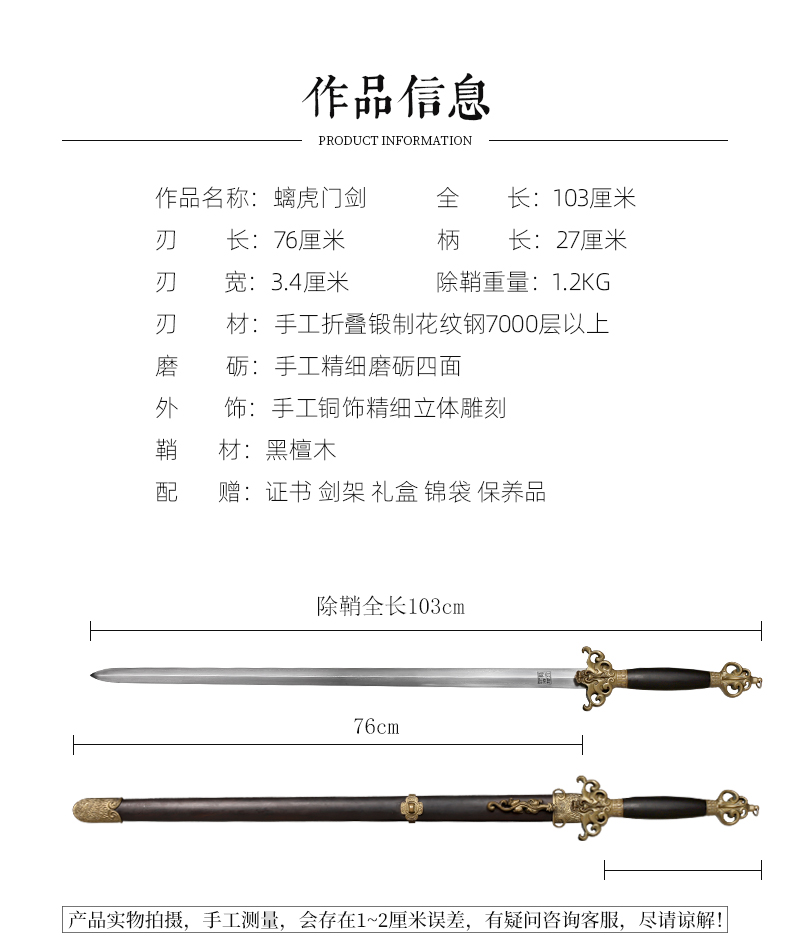 螭虎门剑 沈广隆剑铺 龙泉沈广隆宝剑传统剑礼品剑收藏剑 sgl-3116 未开刃