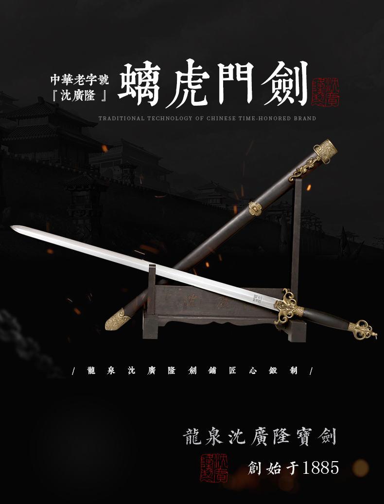 - 龙泉沈广隆剑舖创始于1885年(清光绪)位于浙江省龙泉市,是当地唯一一家“子承父业”一脉相承的中华老字号宝剑生产企业,是国家级非物质文化遗产龙泉宝剑项目保护单位,并以“天下第一剑”闻名于海内外....