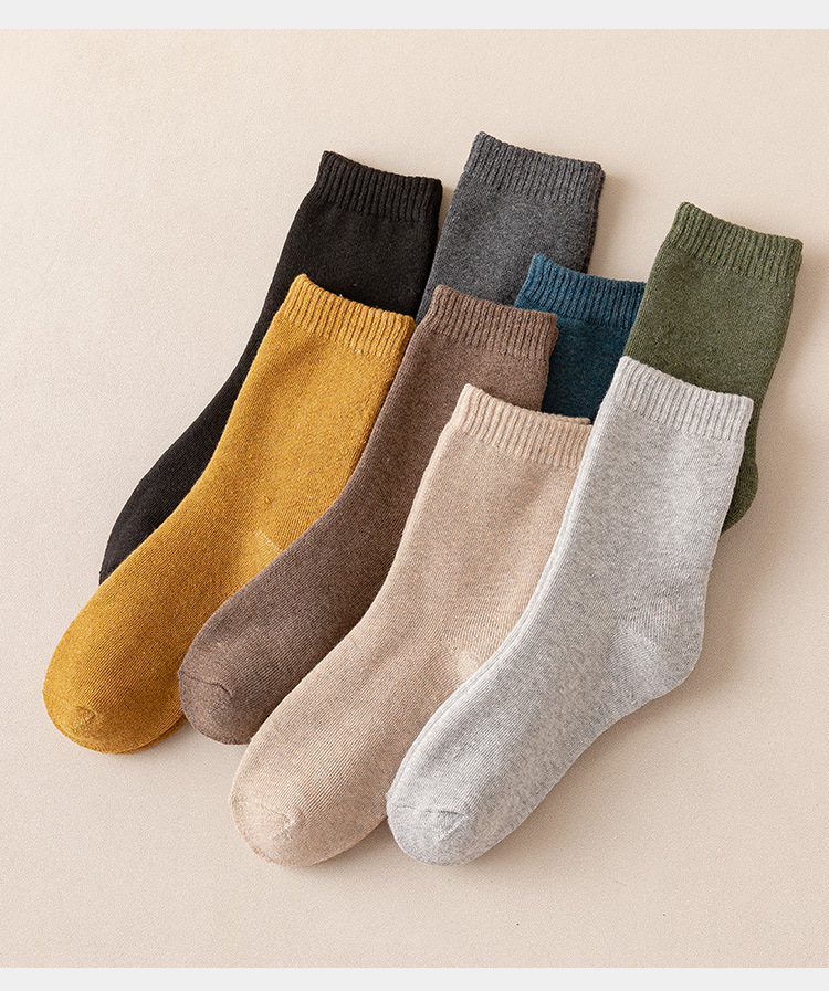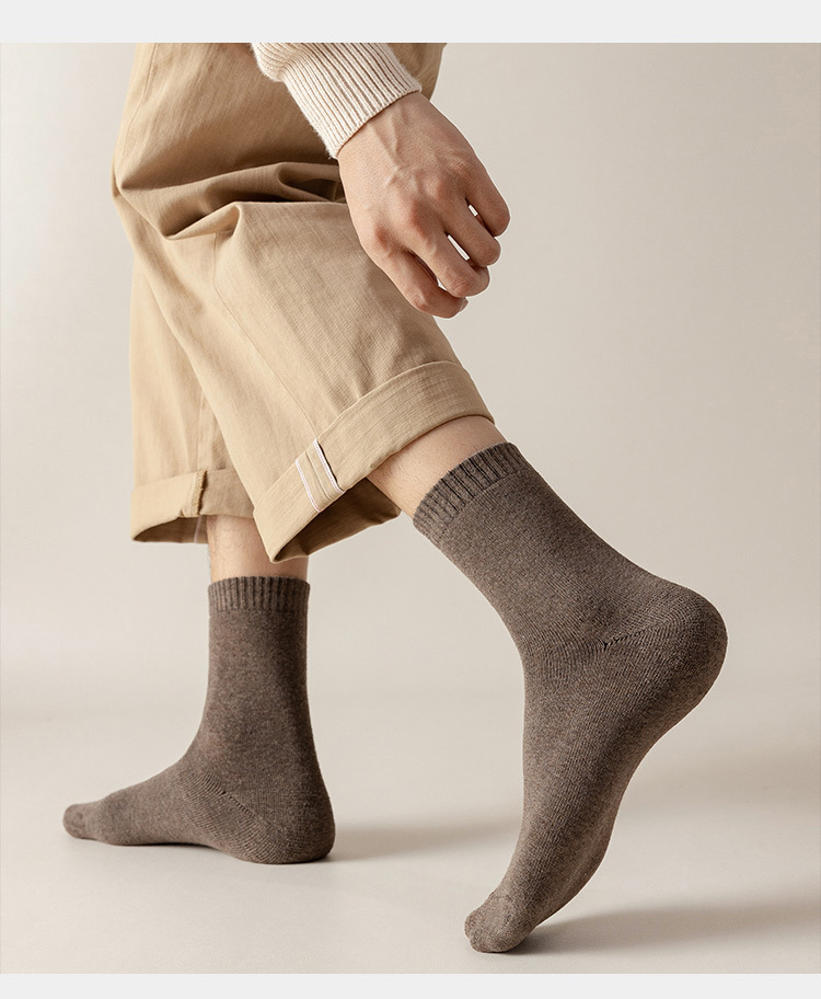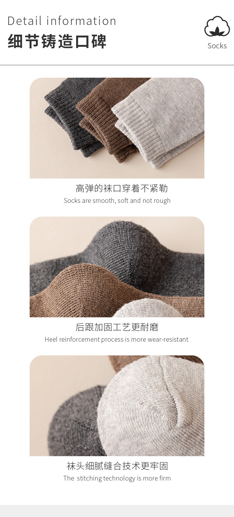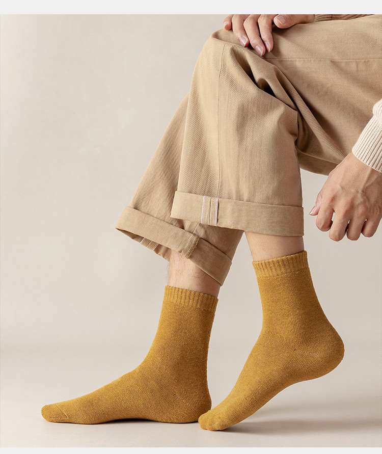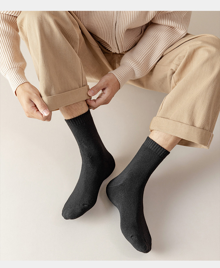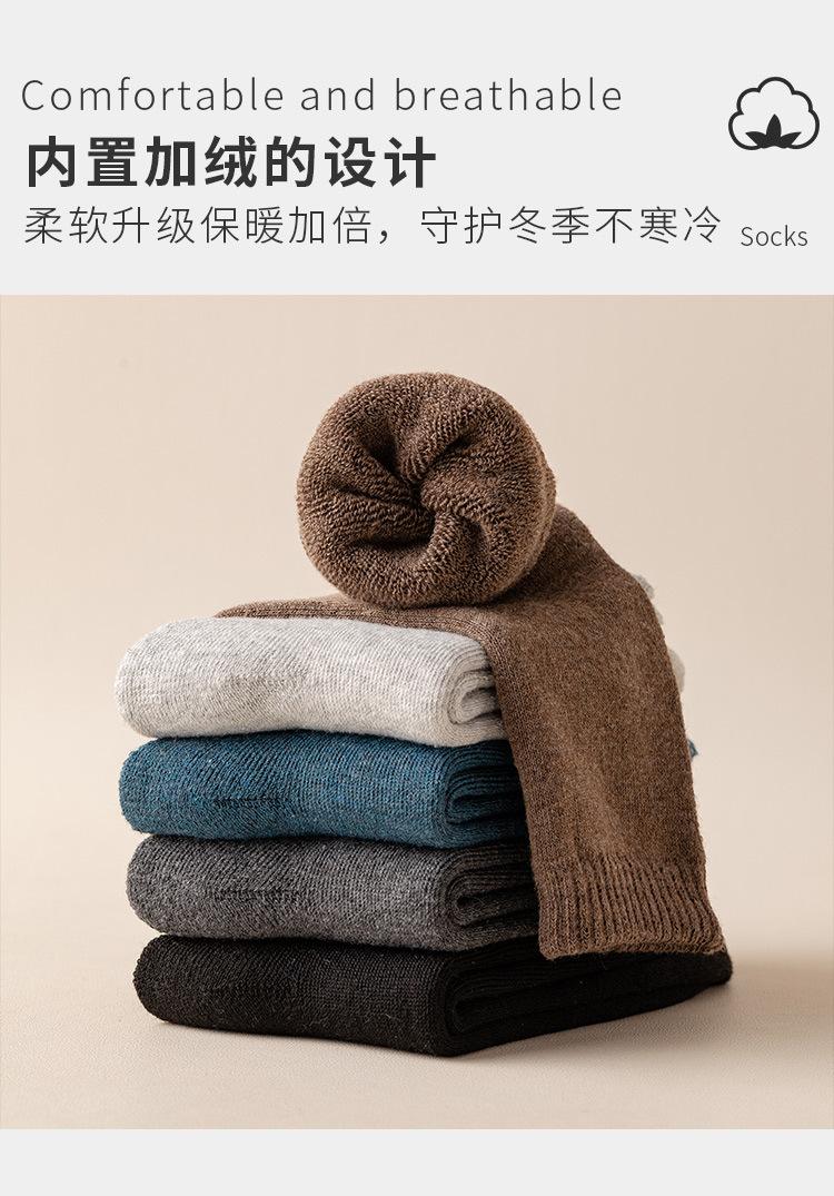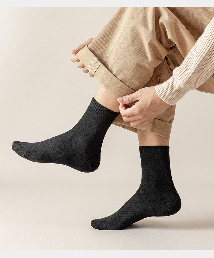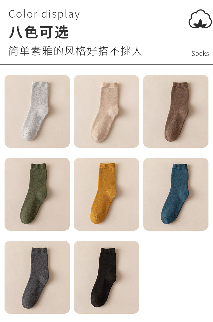 【5双装 柔软亲肤 加倍呵护】男士毛巾袜子冬季加厚加绒男袜ins纯色中筒袜吸汗保暖棉袜长筒袜