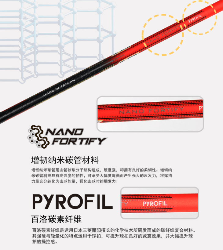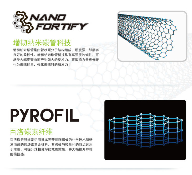 拍框材质:超高刚性碳纤维 + NANO FORTIFY