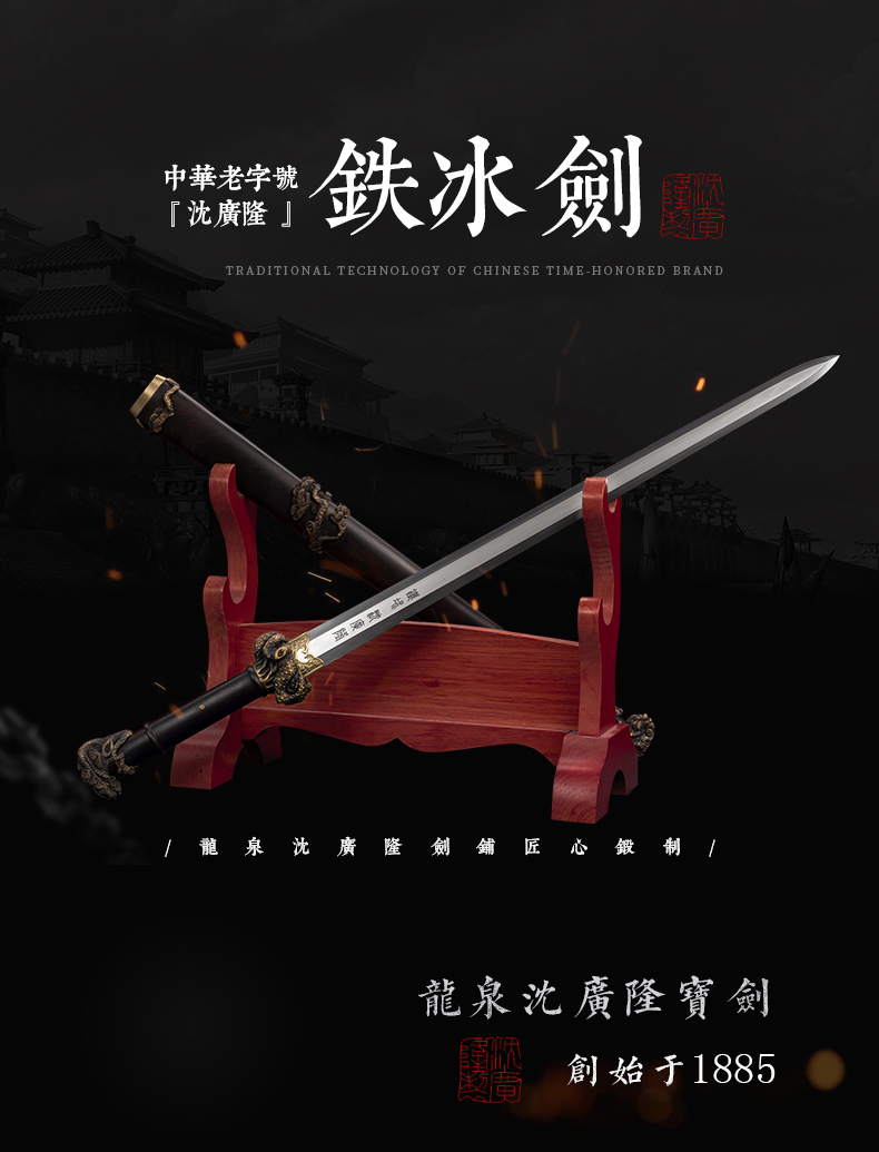 - 龙泉沈广隆剑舖创始于1885年(清光绪)位于浙江省龙泉市,是当地唯一一家“子承父业”一脉相承的中华老字号宝剑生产企业,是国家级非物质文化遗产龙泉宝剑项目保护单位,并以“天下第一剑”闻名于海内外....