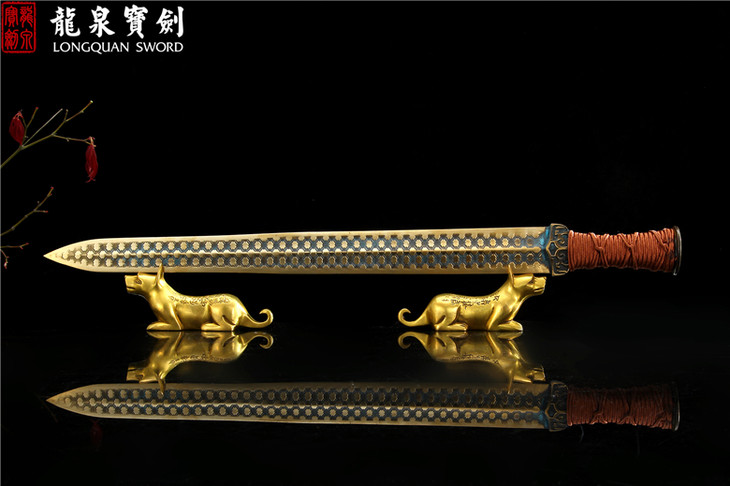 精装纯铜越王剑礼盒是浙江省中华老字号企业龙泉宝剑厂多位大师在龙泉宝剑掌门人张叶胜先生的带领下,齐心协力,博思广义一起设计制作出来的越王剑,采用纯铜制作的全剑,是向遥远的铜器刀剑时代的敬礼。全剑58厘米长左右,流线造型,剑气如虹。用兽形制作的剑架也是充满创意,好似两只英气的祥兽护卫着这把充满灵性的宝剑。整个礼盒美观大方,充满创新的想法和,给人独特的视觉冲击,是商务礼仪,居家装饰镇宅的非常棒的选择。