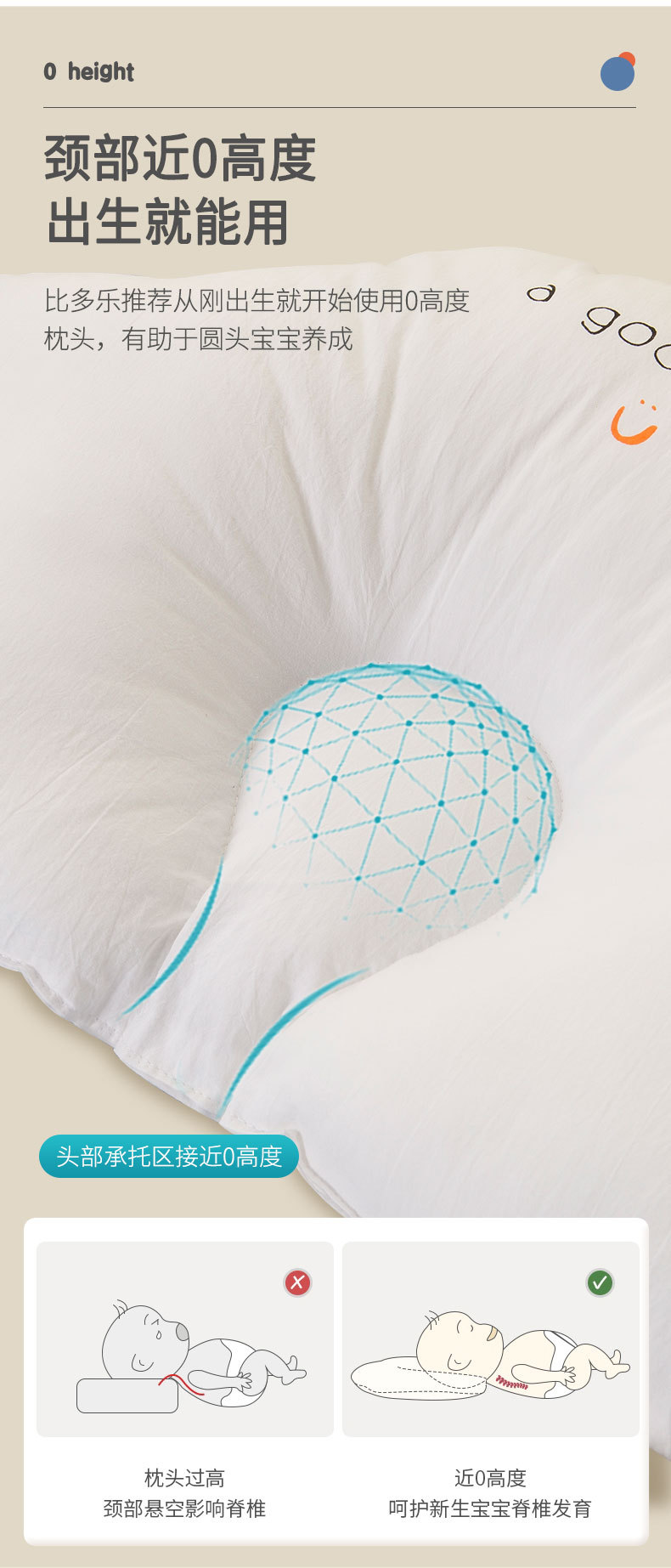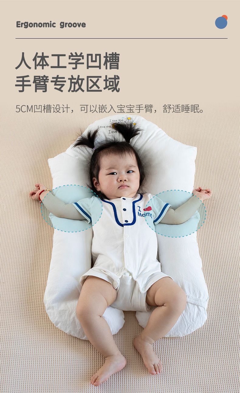 【人体工学凹槽设计 助力宝宝睡出好头型】婴儿定型枕透气安抚抱枕纠正头型护头睡新生儿宝宝防偏头扁头