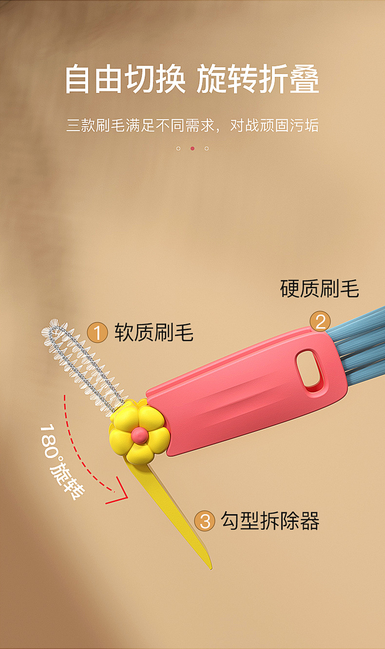 【特惠2个装!】beedoll 蓓兜保温杯杯盖缝隙清洗刷洗杯子神器杯刷无死角多功能凹槽刷