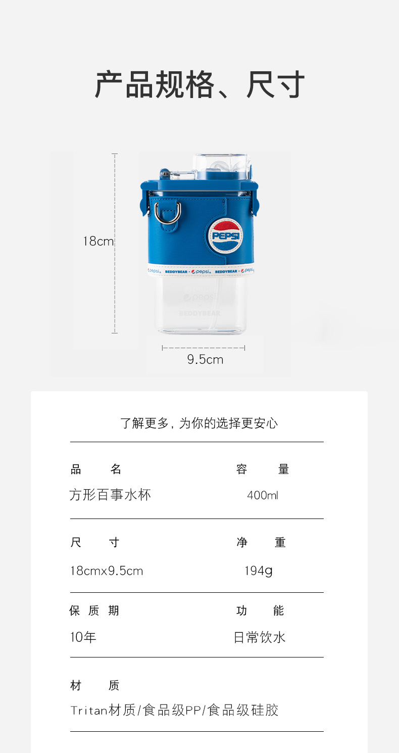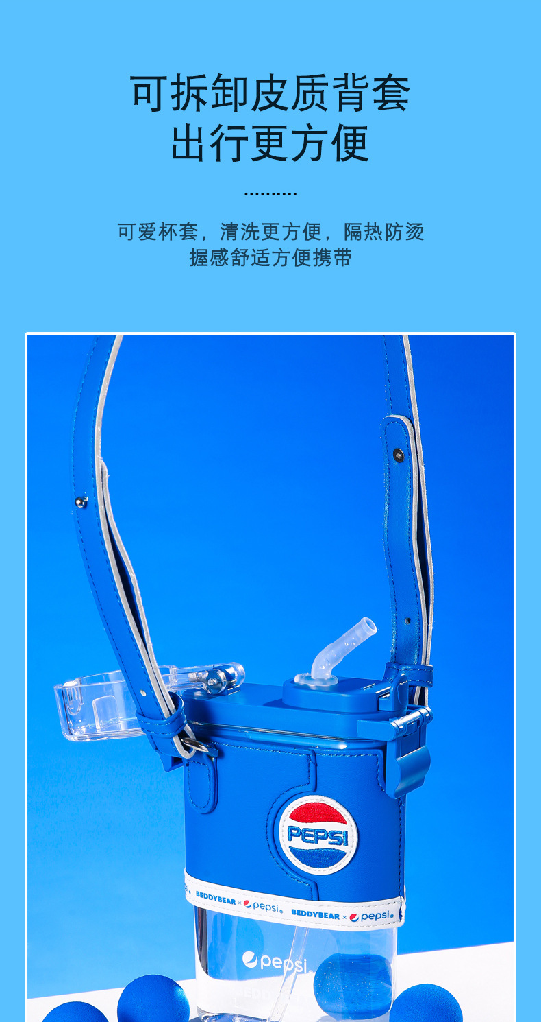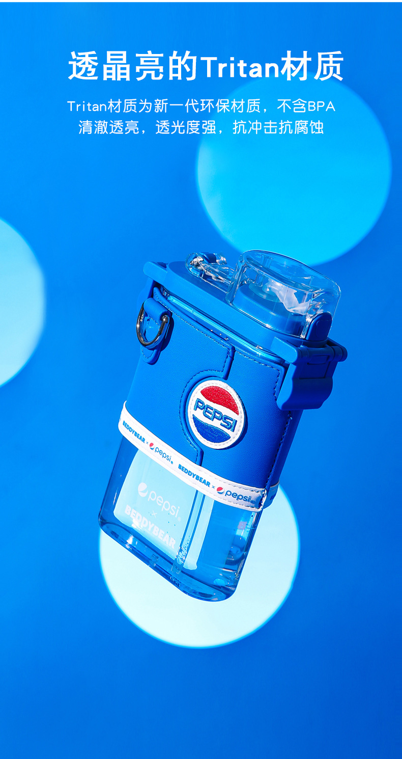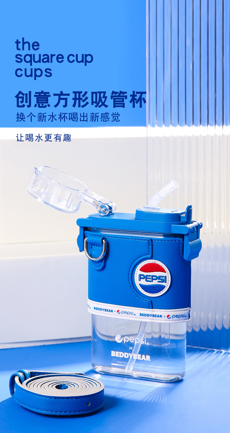 【官方防伪】杯具熊&百事联名夏季吸管杯Tritan材质网红方形水杯男女便携学生