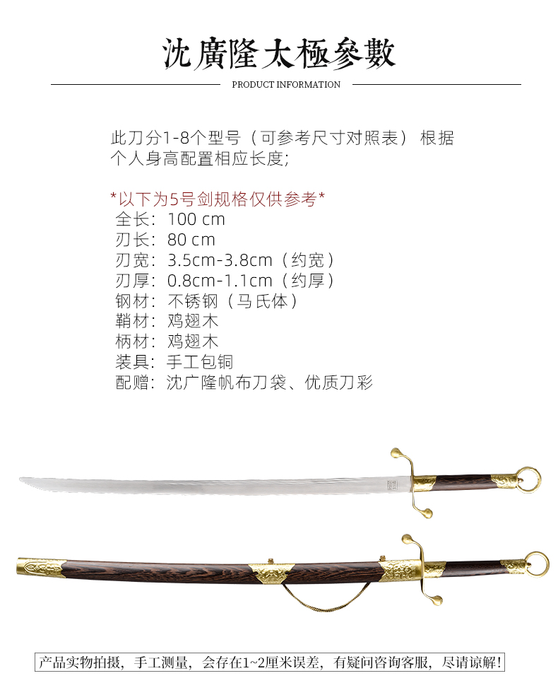 标准太极刀刀尖 武术刀按身高 龙泉沈广隆宝剑沈广隆剑铺太极刀 sgl-9001 未开刃