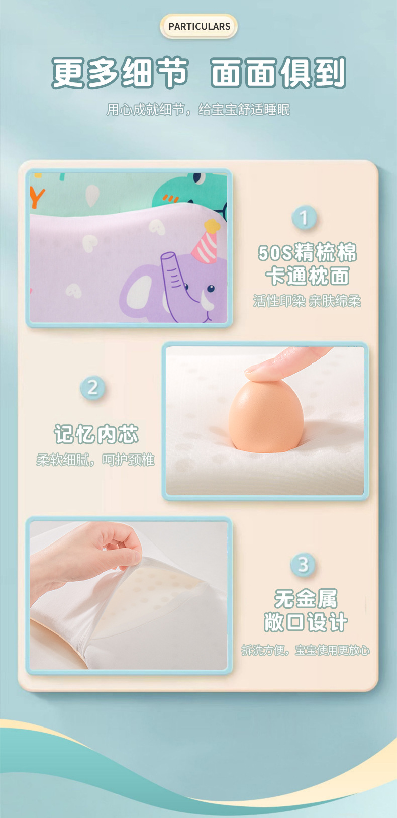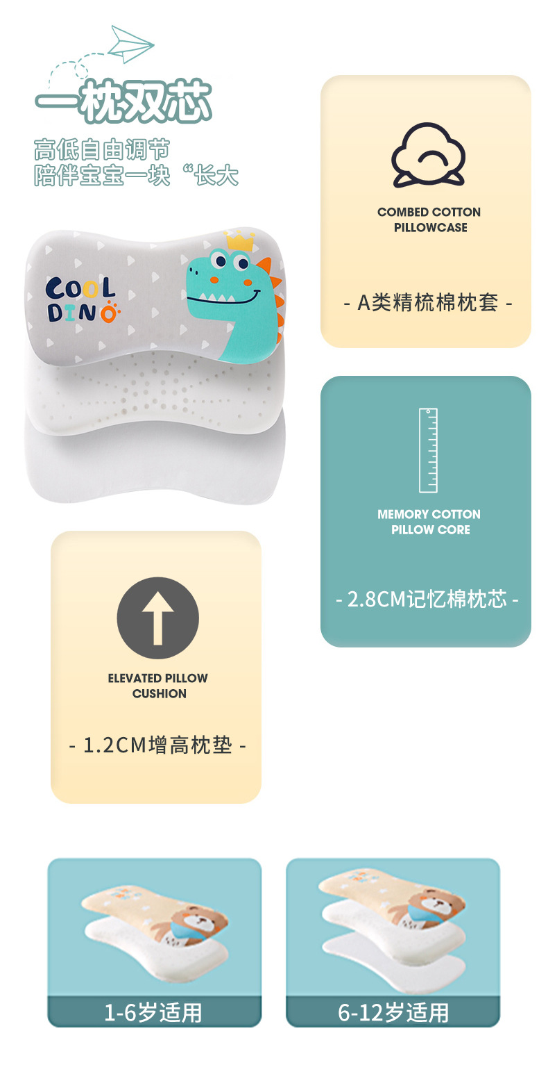【一枕双芯 呵护宝宝纯净睡眠】可调节透气儿童枕头慢回弹宝宝记忆枕幼儿园午睡颈椎枕芯枕套全棉