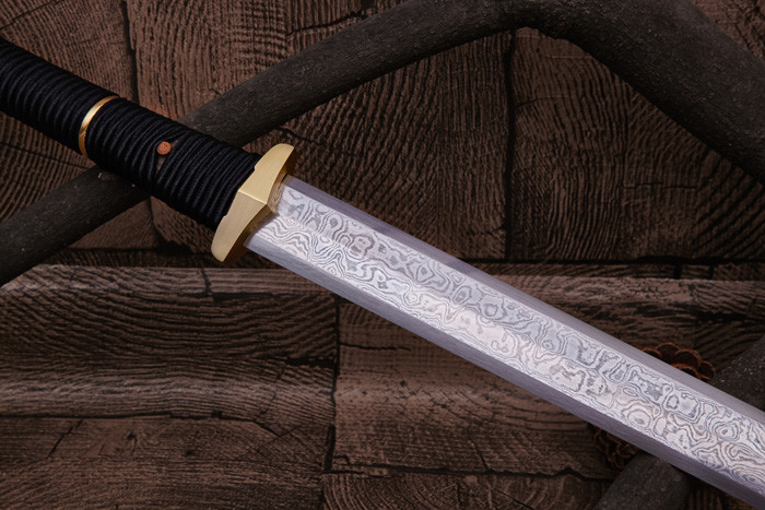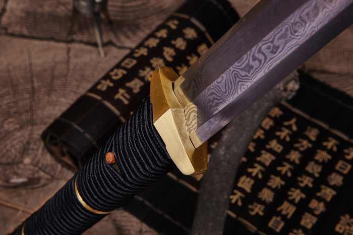 <刀刃材质>: 百炼花纹钢折叠锻打