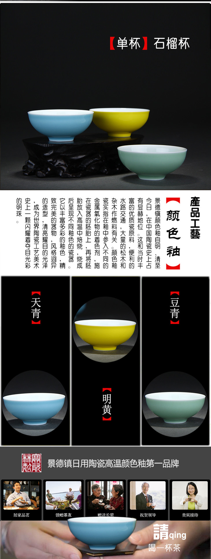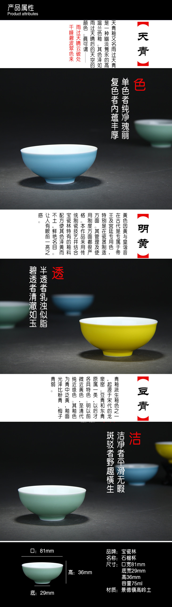 【宝瓷林】天青 豆青 明黄颜色釉石榴单杯