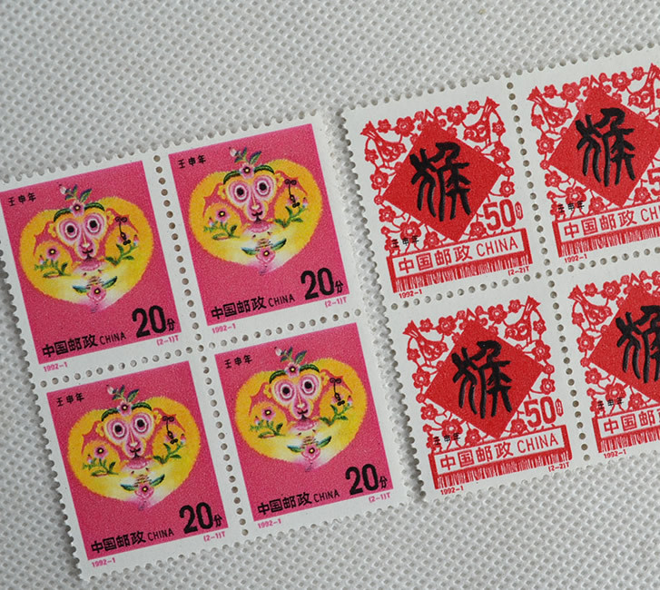第二轮生肖邮票大全,从92年猴到03年羊12年所发行的生肖邮票。