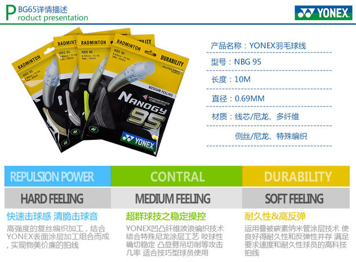 型号:尤尼克斯 YONEX NBG95 羽毛球线