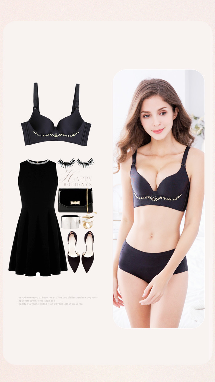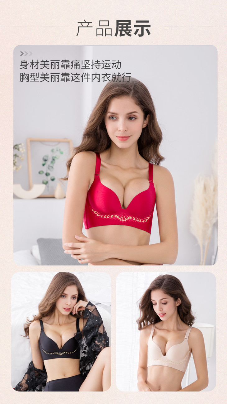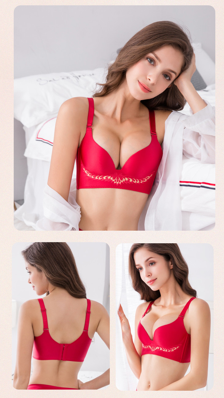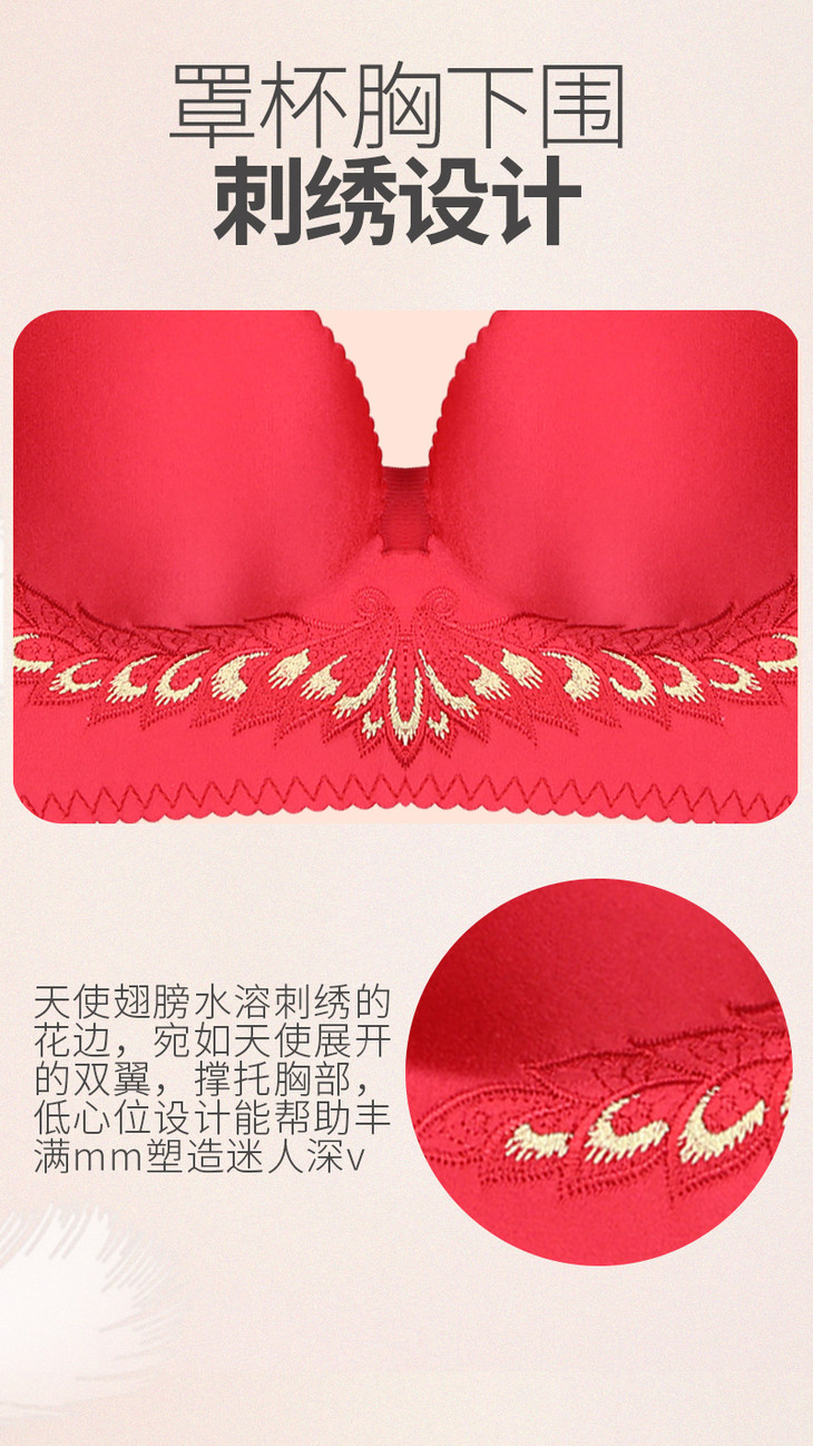 【梦之翼-刺绣款文胸】 无钢圈 聚拢有型 收副乳 按摩乳腺 不空杯 后背无痕 无钢圈_1318