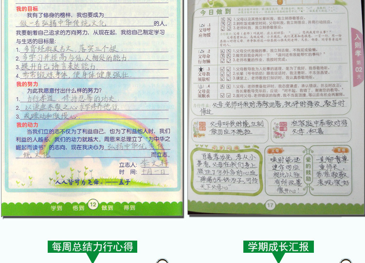 产品名称:弟子规德育成长日记(上下册)——初学版弟子规力行表 正版