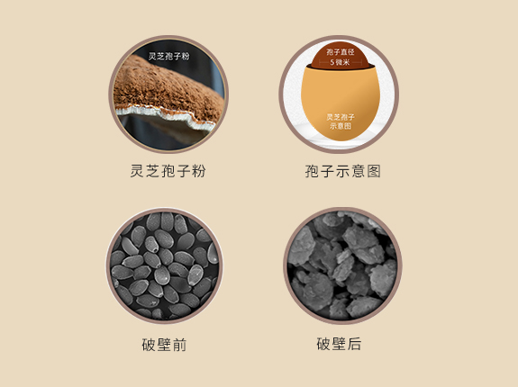 灵芝孢子是灵芝的种子,灵芝精华。灵芝多糖、三萜等有效活性成分的含量远高于其母体灵芝,营养价值是灵芝子实体的3-4倍。灵芝孢子有一层坚硬的外壳,需低温物理破壁后才能被人体有效吸收利用,就象核桃去壳食用是一个道理。