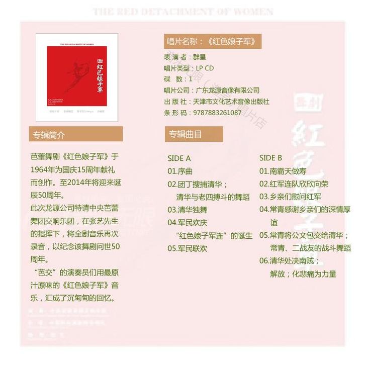 龙源正品 中央芭蕾舞团交响乐团 《红色娘子军》 全新LP黑胶唱片