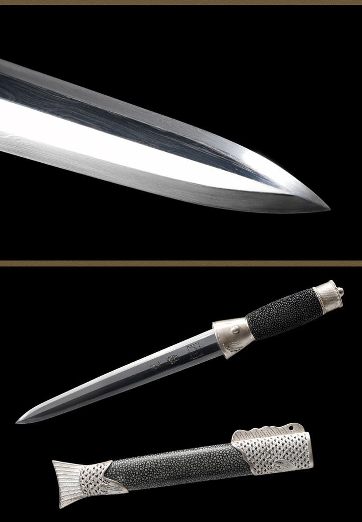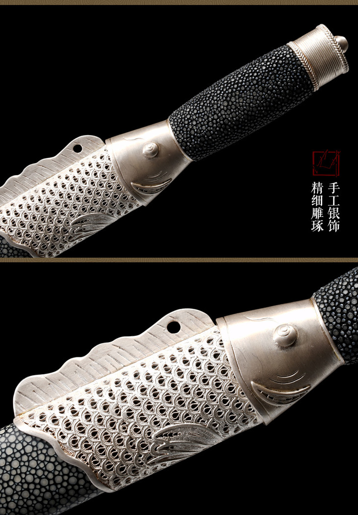 纯银鱼肠剑 沈州作品 龙泉短剑 龙泉沈广隆宝剑 沈广隆剑铺 高档礼品短剑 sgl-7001 未开刃