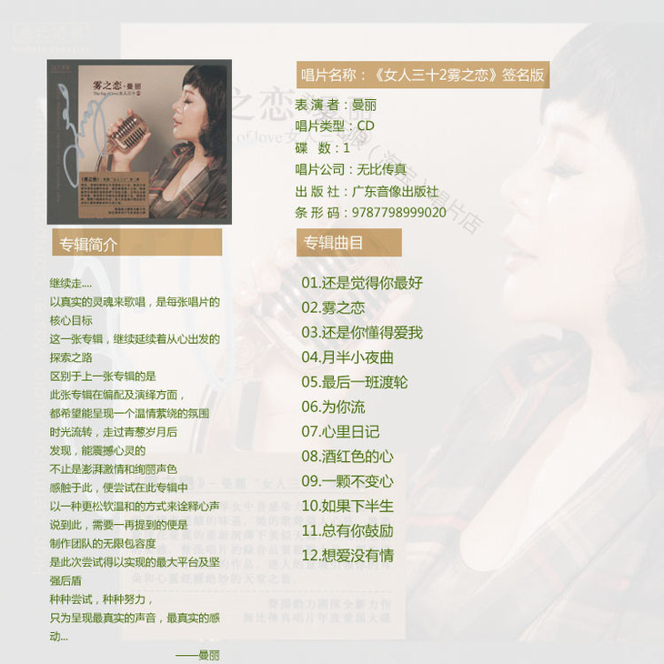 包邮 无比传真正品 经典发烧唱片 曼丽 《女人三十2 雾之恋》
