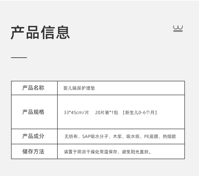 十月结晶婴儿隔尿垫一次性防水透气33*45cm20片宝宝婴幼儿护理垫SH89