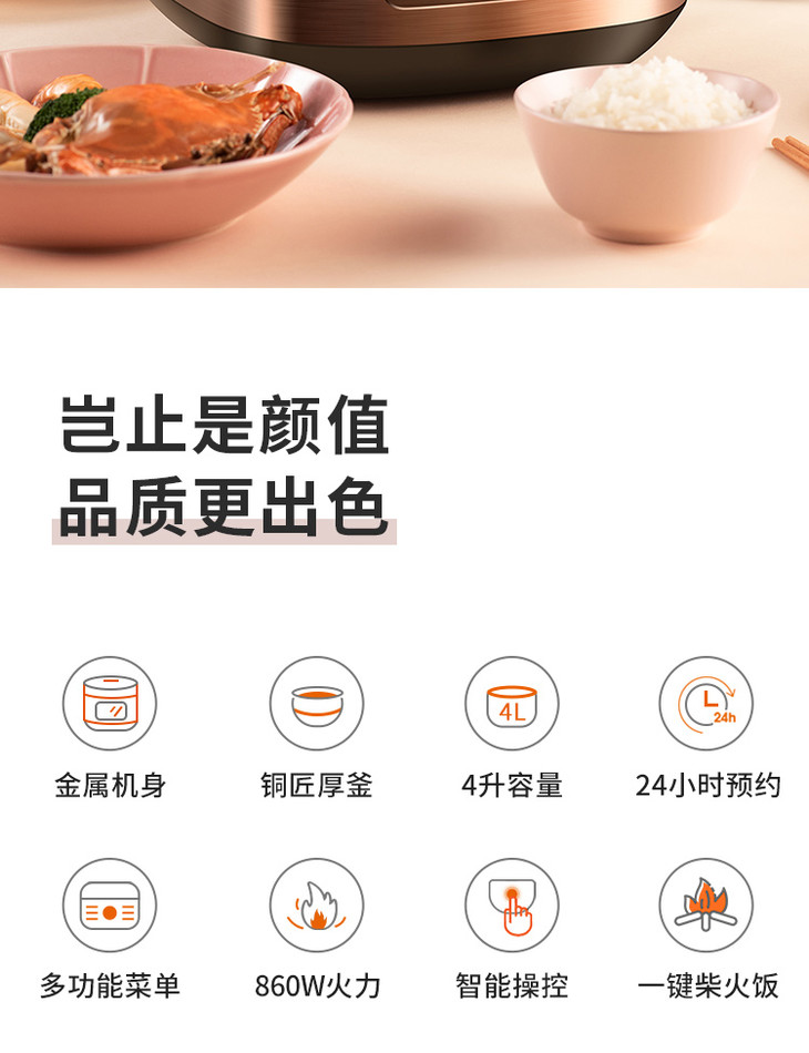 Joyoung/九阳F-40FZ815智能电饭煲铜匠厚釜家用多功能电饭锅4.0升