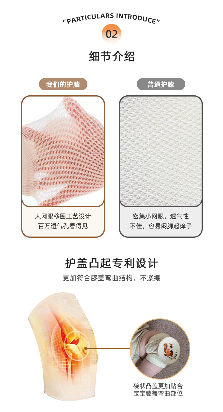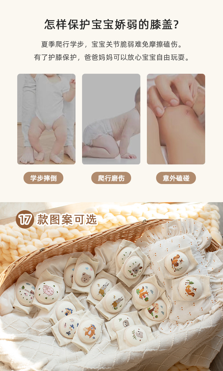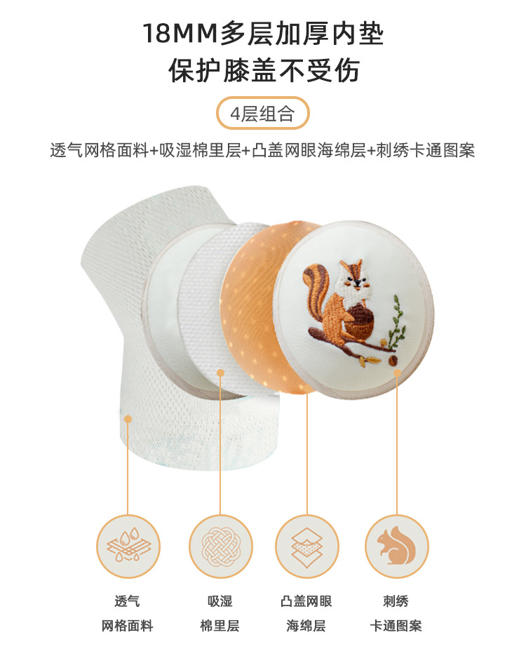 【宝宝学步护膝 健康亲肤透气】23年夏宝宝护膝爬行袜婴儿护膝防摔护具网眼透气儿童膝盖保护袜套