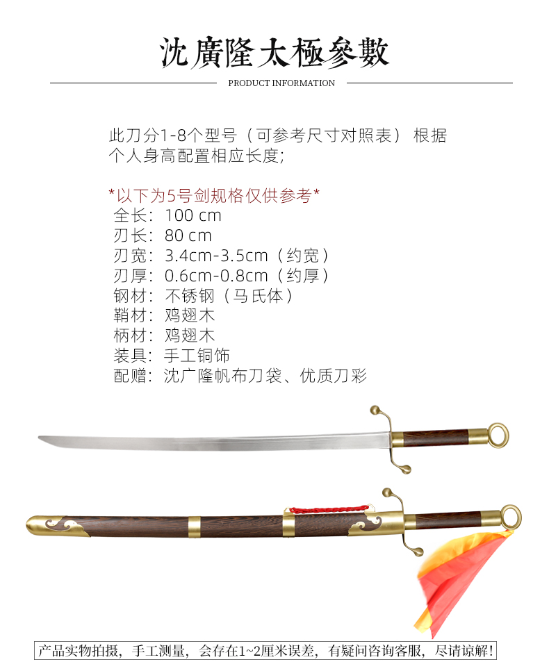 手工纯铜太极刀 武术刀 沈广隆剑铺 龙泉沈广隆宝剑 标准太极刀sgl-9006 未开刃