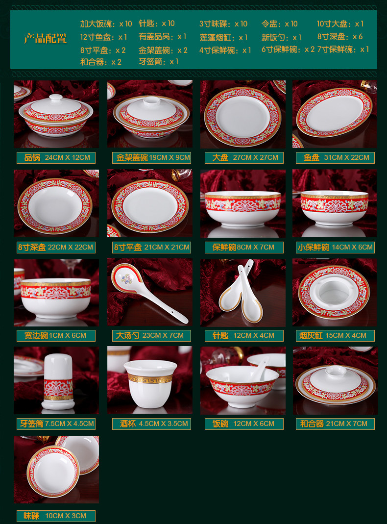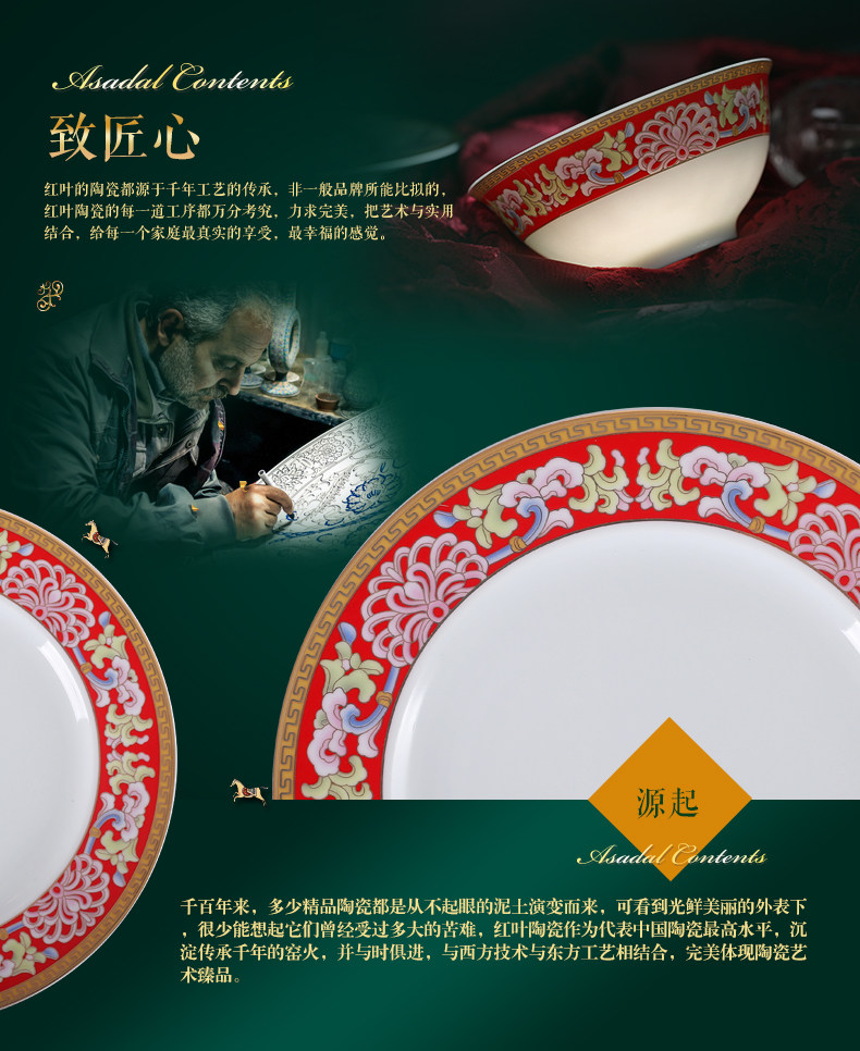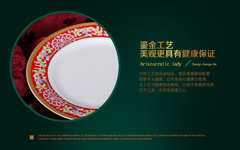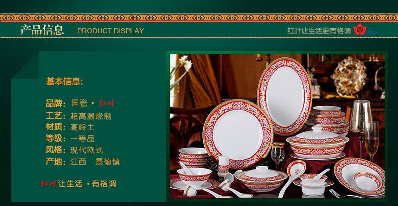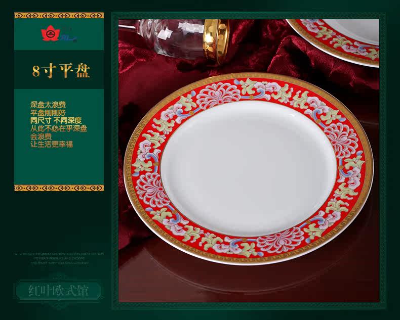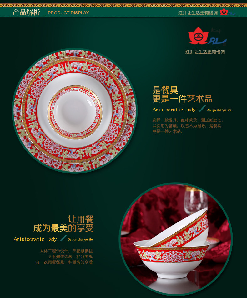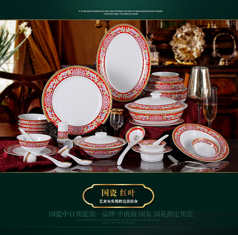 【婚庆瓷】景德镇陶瓷 国瓷红叶 幸福美满中餐具