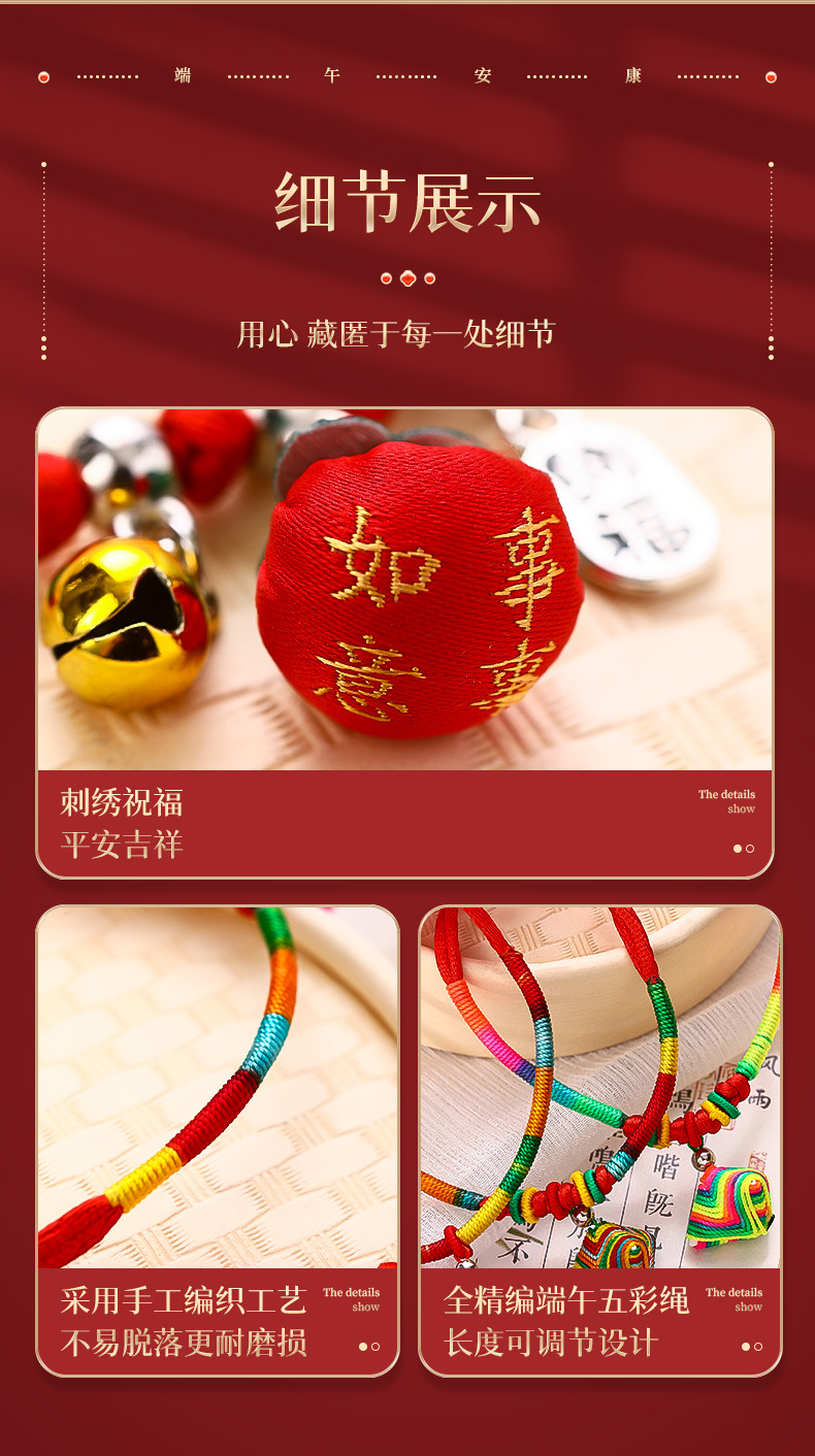 【限时4条装!端午安康合金五彩绳】端午节红绳手链手工 DIY编织五彩绳儿童宝宝粽子手绳礼物闺蜜手链