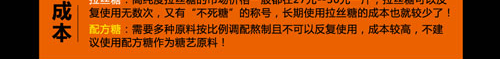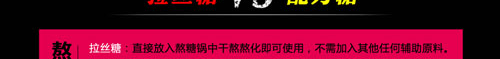 厨易购所出售的拉丝糖保证百分百的纯度绝不掺假、拉丝效果极佳,与市场上卖的便宜的完全不一样的品质。放心购买!您可以先购买一代试用,好用再来买,我们的产品经得起考验!我们的拉丝糖直接熬化即可拉丝,出丝率百分百,没有往里面添加过任何增重物及白糖!