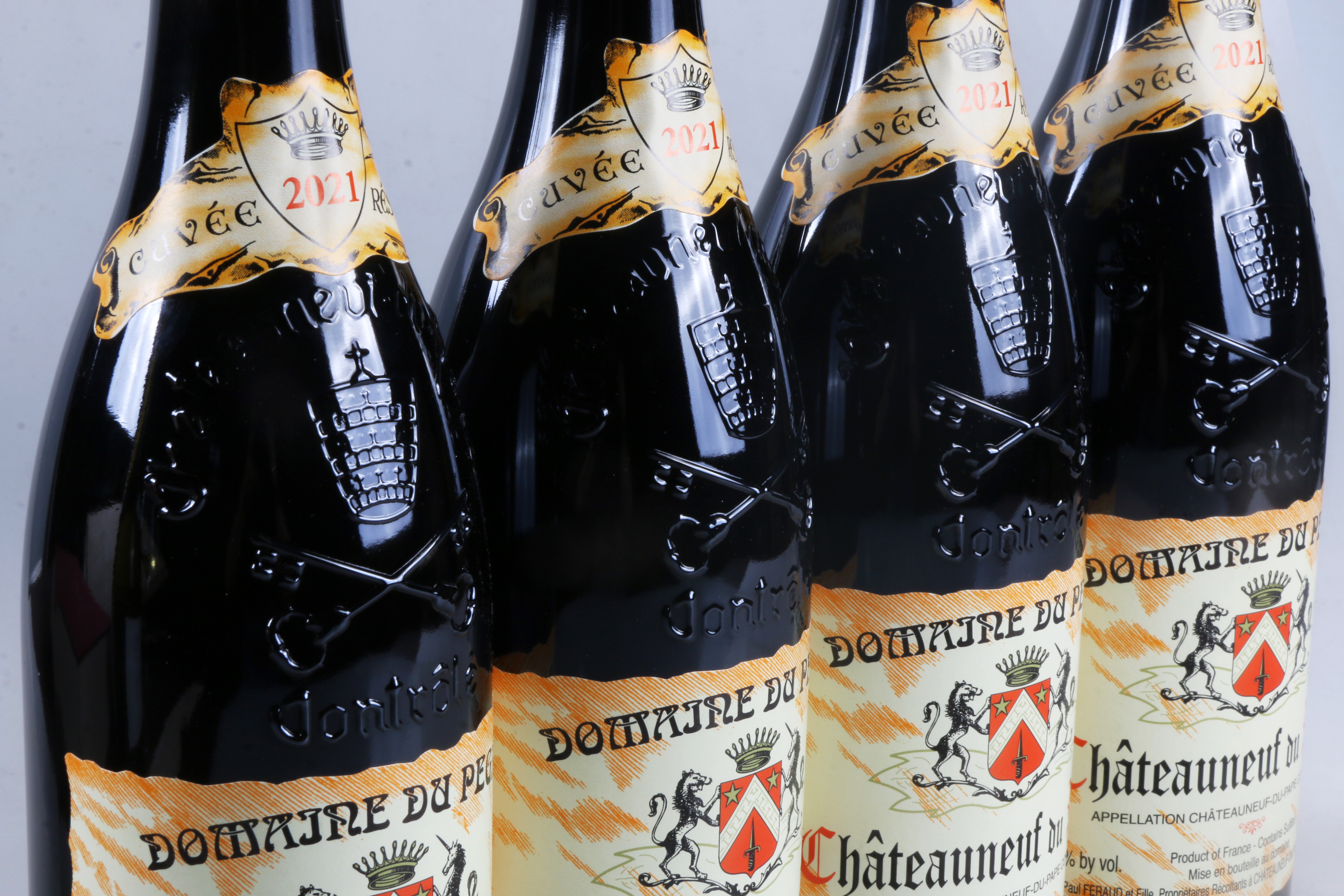 与普通酒瓶不一样,此酒瓶身刻有浮雕花纹,高耸的教皇冕和交叉配置的两把钥匙非常显眼,这是教皇新堡葡萄酒的象征。根据 1937 年教皇新堡酿酒行业工会的规定,教皇新堡葡萄酒必须使用带有教皇标志的浮雕酒瓶,以区分其他冒牌教皇新堡的葡萄酒。