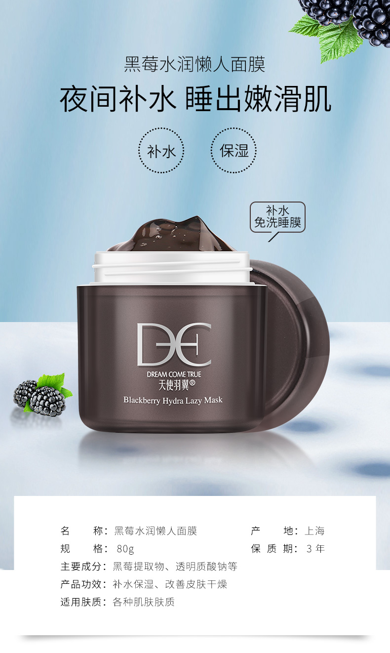天使羽翼 黑莓水润懒人睡眠面膜女免洗补水保湿