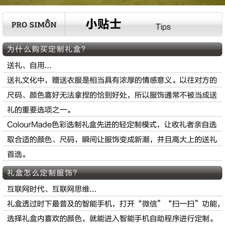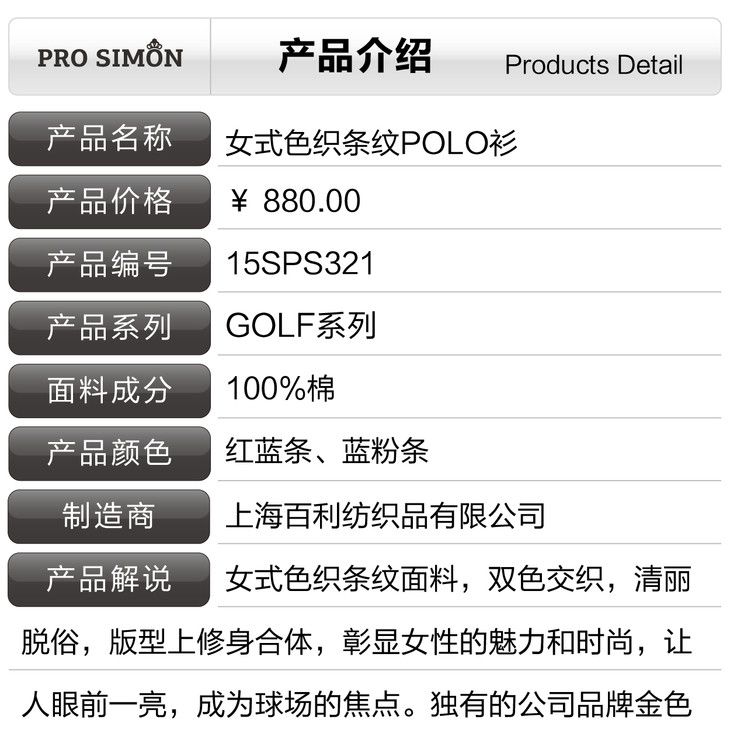 - PROSIMON高尔夫服饰,旗下有高尔夫运动系列、好动衬衫系列、色彩选制系列丰富的商品线。