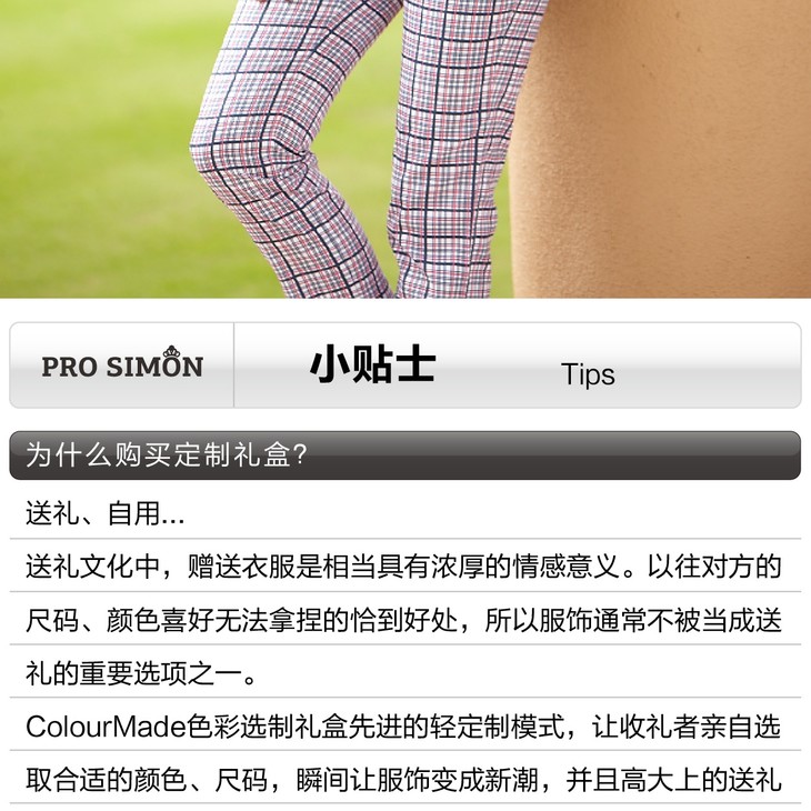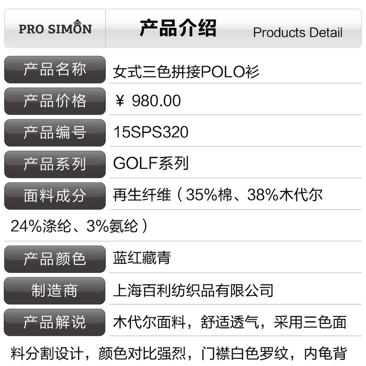 - PROSIMON高尔夫服饰,旗下有高尔夫运动系列、好动衬衫系列、色彩选制系列丰富的商品线。