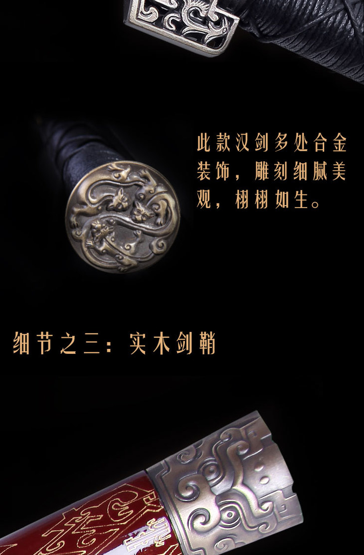 龙泉宝剑 蒋氏刀剑 花纹钢金丝古汉剑未开刃