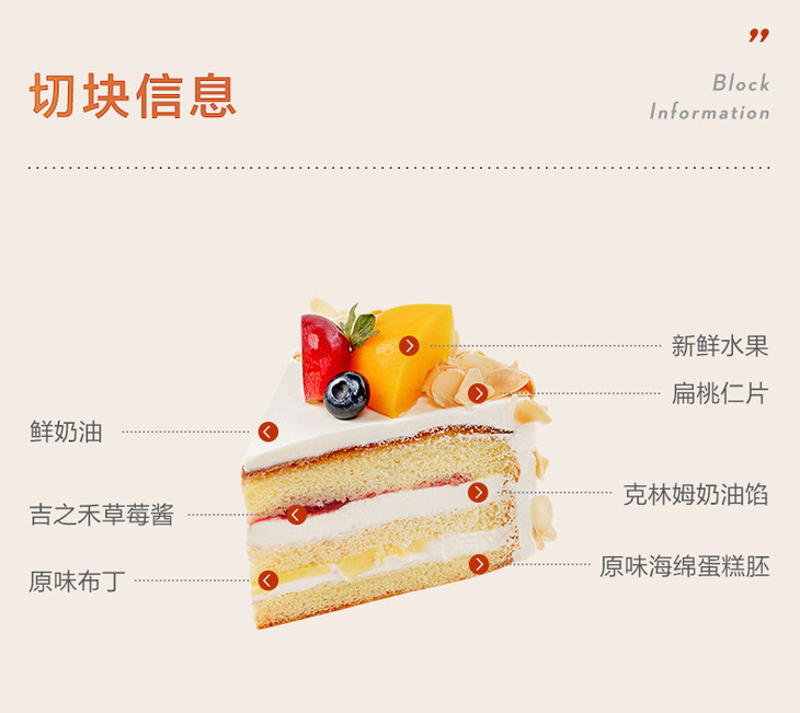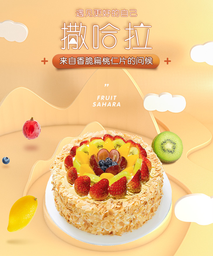 仟吉武汉 撒哈拉双层 线下同款叠层蛋糕 扁桃仁水果奶油蛋糕 武汉三环内可配送至少需提前24小时订