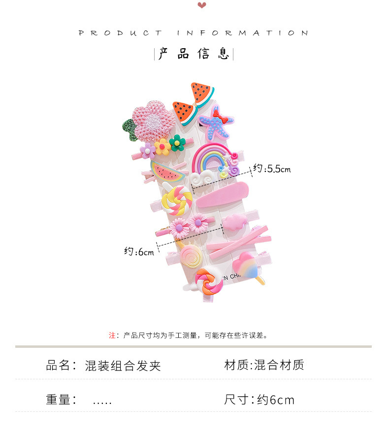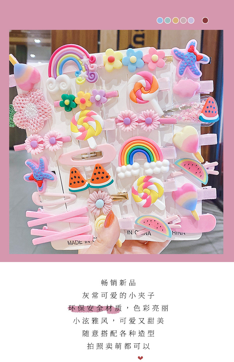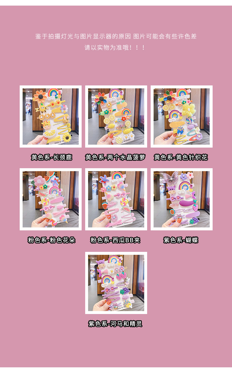 儿童发夹14件套装卡通可爱女宝宝小动物花朵夏季清新甜美学生边夹