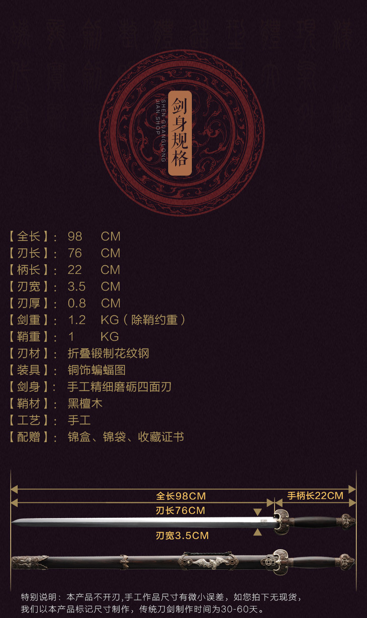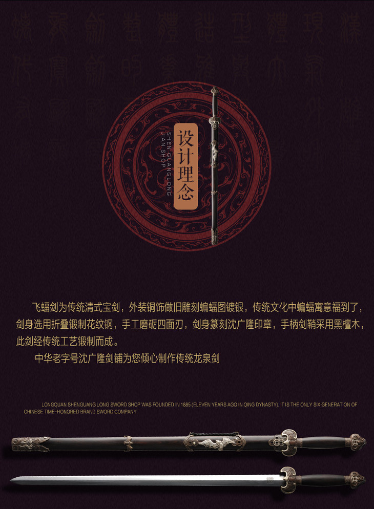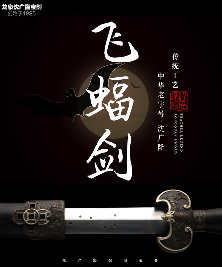 飞蝠剑 沈广隆剑铺龙泉沈广隆宝剑龙泉剑手工传统剑礼品剑收藏剑 sgl-3067 未开刃