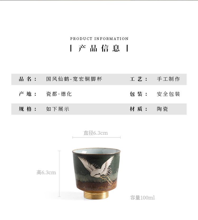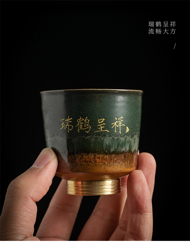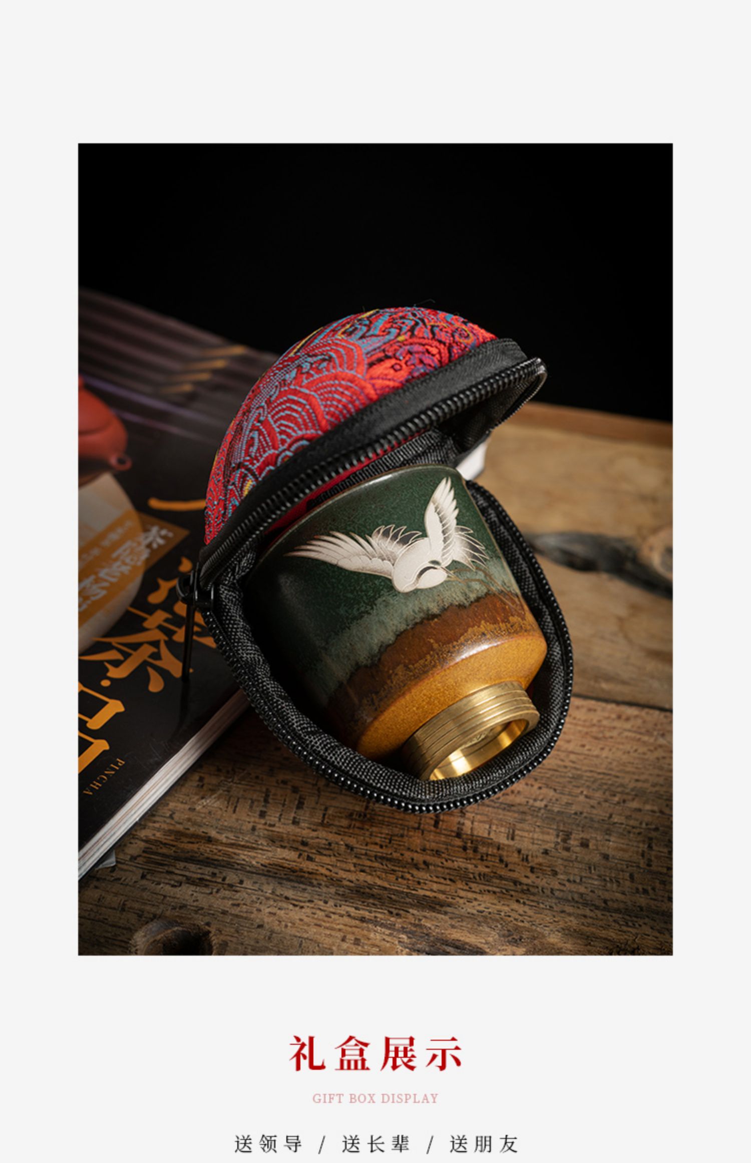 【杯子】茶具 茶杯 复古国风仙鹤 窑变釉 品茗杯 单茶盏 泥视界 礼盒装 餐饮用具