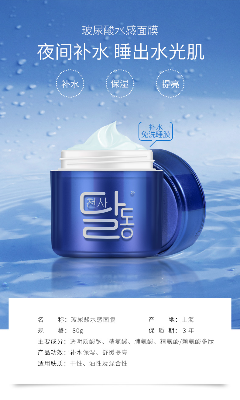 天使羽翼 玻尿酸水感面膜 夜间补水保湿睡眠面膜女免洗
