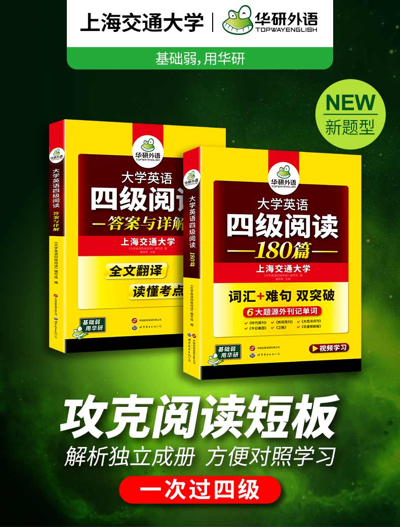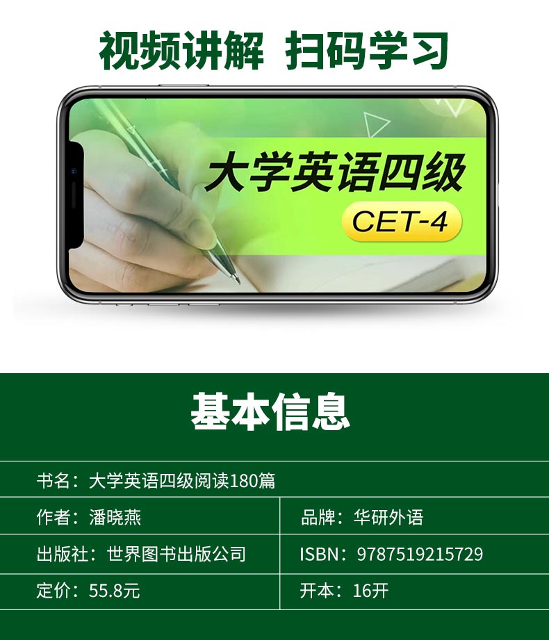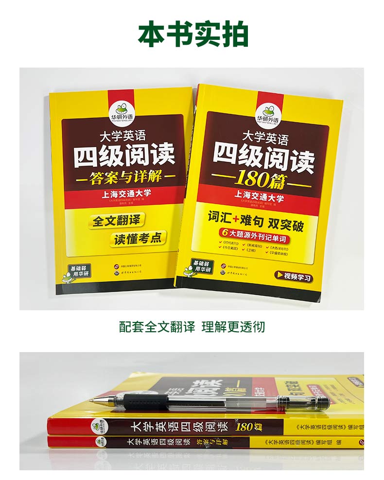 华研外语 英语四级阅读 专项训练备考2025年12月 大学英语四六级阅读理解180篇强化词汇单词考试历年真题试卷听力翻译写作文书cet46