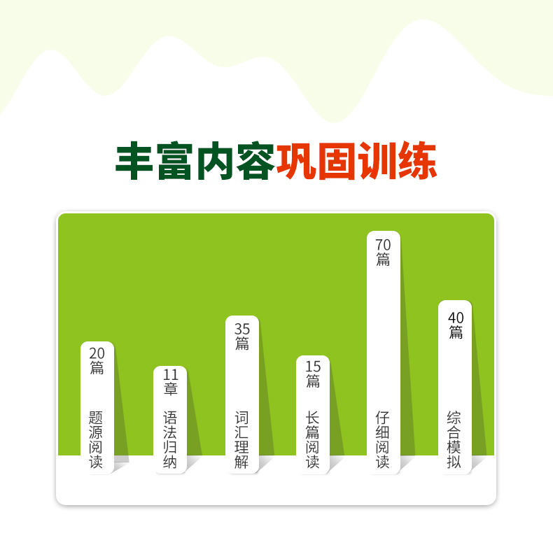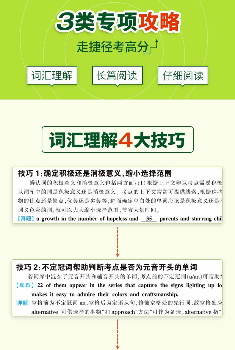 2. 英语四级阅读词汇理解35篇+长篇阅读15篇+仔细阅读70篇;