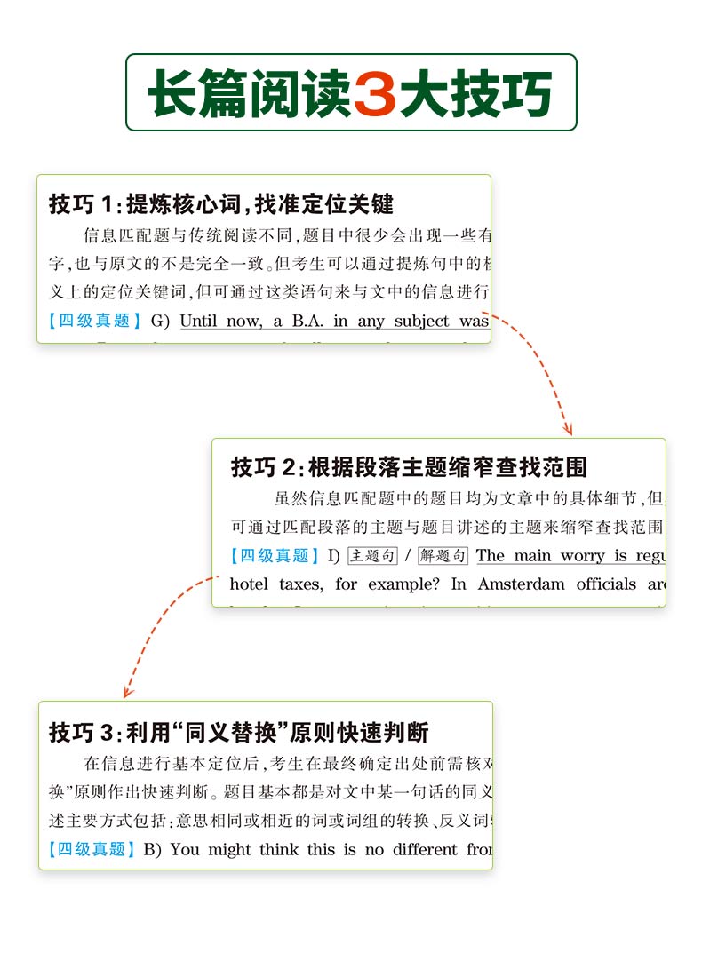 2. 所有训练题参照全新英语四级阅读考试改革新题型命题,备考针对性强;