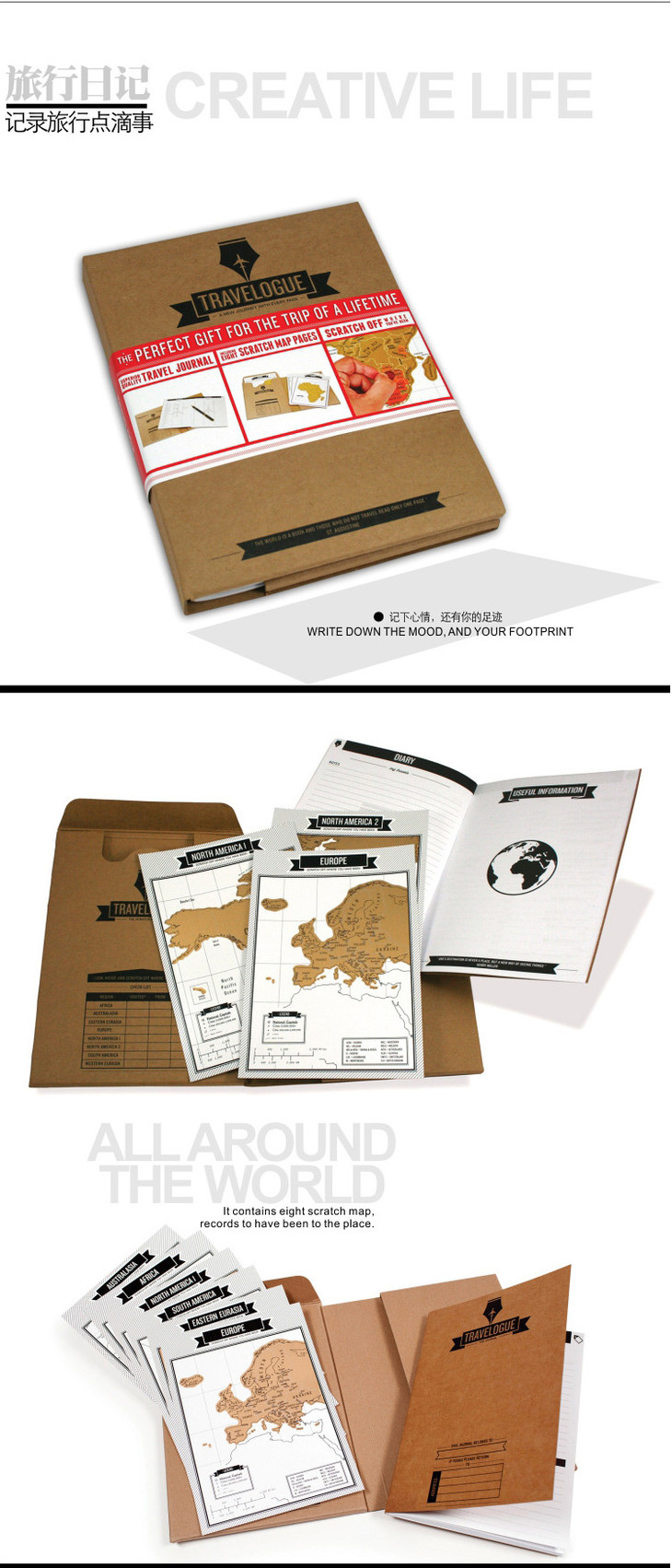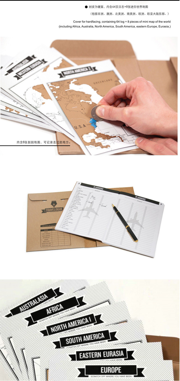 【为思礼】刮刮地图 旅游日志地图 世界地图 笔记本地图